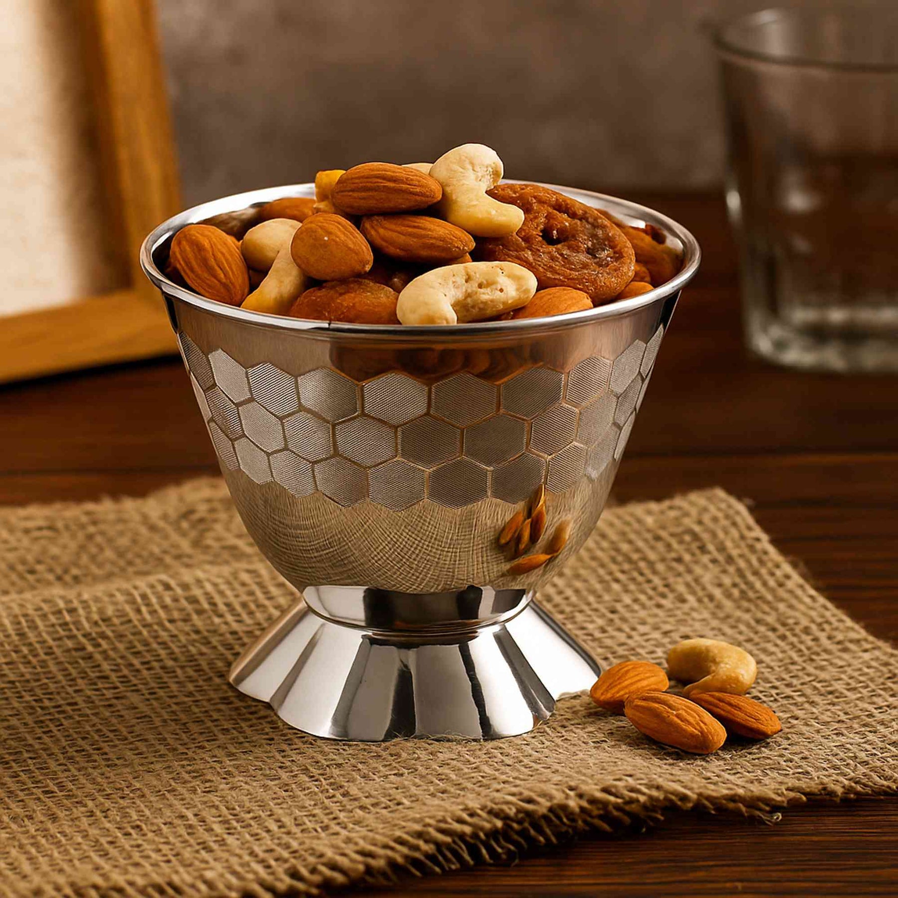 While storing, wrap the product is a soft, felt cloth and then in an airtight bag or container. Dampness encourages tarnishing and can also harm wooden components so store the products in clean, dry and airtight cupboards.